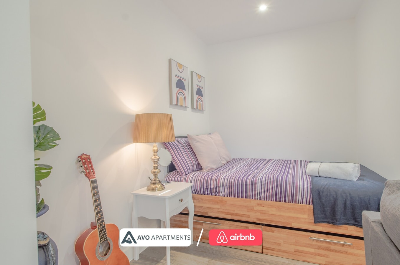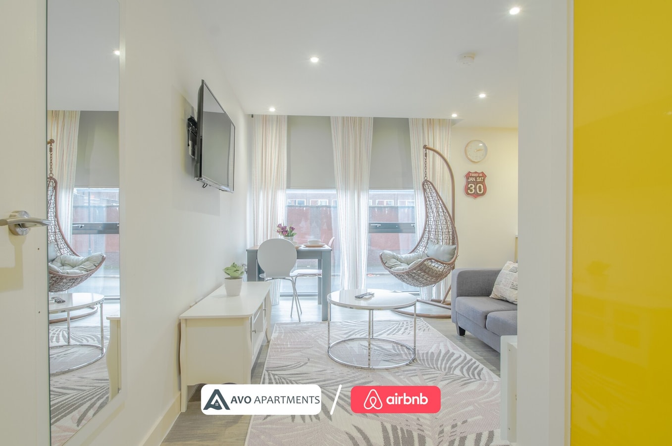 Stay near Sheffield City Centre in this bright and cosy apartment, just minutes from the train station, restaurants, shops, and supermarkets. Enjoy floor-to-ceiling windows, a fully equipped kitchen, modern bathroom, and peaceful living space. Perfect for couples, solo travellers, families, and business guests. Save 5% on 2-night stays or 20% on monthly bookings. Book now and enjoy comfort, convenience, and value with Avo Apartments.